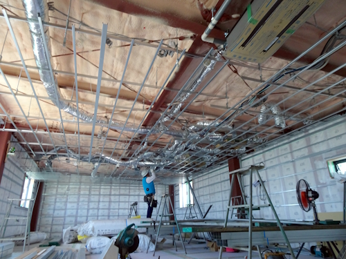 下地となるプラスターボード貼り作業が行われております。