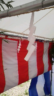 祭壇の廻りに注連縄(しめなわ)で聖域を囲い、
